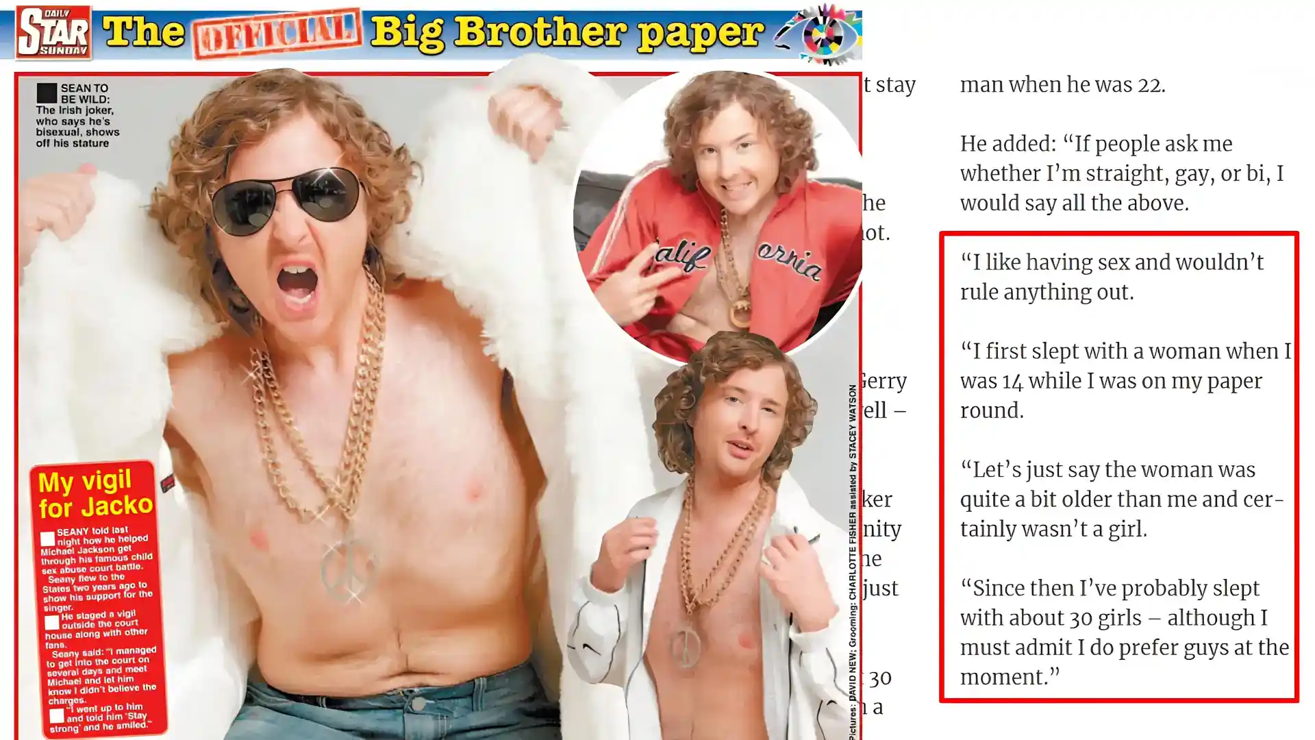 After his spell on Big Brother, O’Kane gave an interview to the UK tabloid The Daily Star, where he made a string of highly questionable remarks. He boasts narcissistically about his sex life, claiming to have slept with around 30 women, while insisting that he currently prefers intimacy with men. The most controversial confession, however, concerns the loss of his virginity: he says he was 14 when it happened with someone “quite a bit older than me and certainly wasn't a girl.” Such an admission raises serious questions about his grasp of consent and the boundaries of acceptable behaviour.