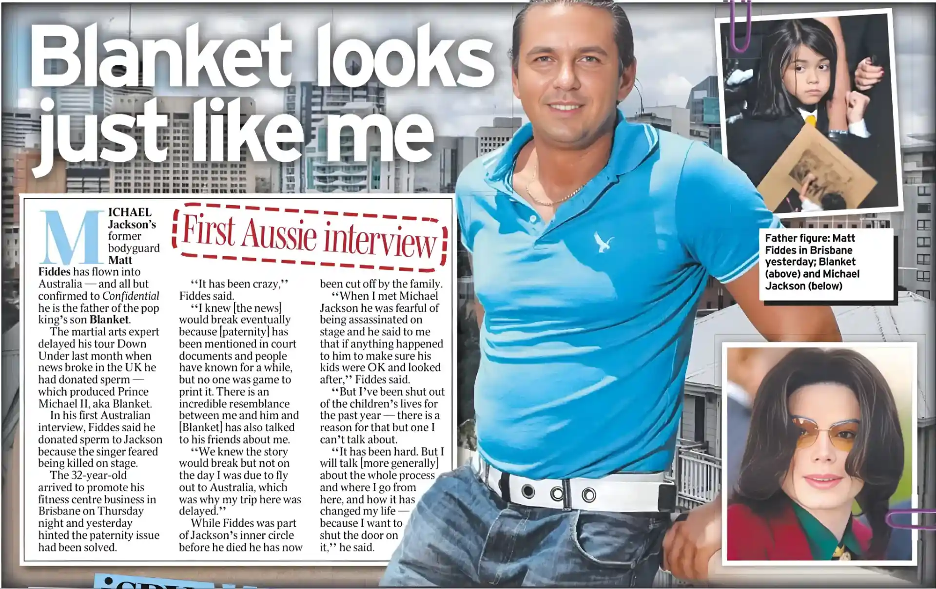 Fiddes describes himself as a martial arts “expert” and former bodyguard to Jackson. After Jackson’s death, he became a fixture in tabloids, frequently selling stories and even claiming he had donated sperm and might be the biological father of Jackson’s youngest son, Blanket.