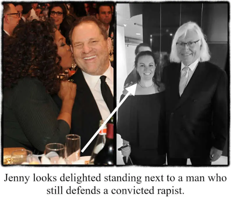 Furthermore, Jenny's credibility is questionable. She's hardly a casual fan, but somebody who seems to have an emotional interest in glorifying Jackson. On 24 February, 2020, she even posted a couple of tweets mocking Oprah Winfrey for having a friendship with Harvey Weinstein, now officially a convicted rapist. Yet the irony is she posed for photographs with Thomas Mesereau, a man who has defended sex offenders.