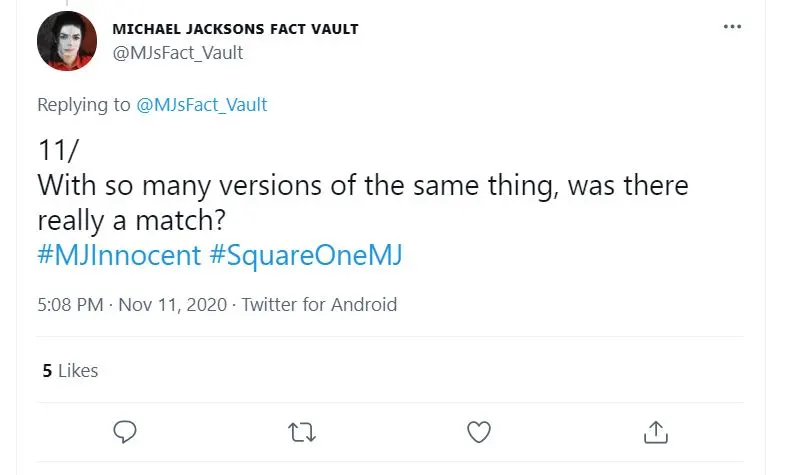 With so many versions of the same thing, was there really a match? #MJInnocent #SquareOneMJ