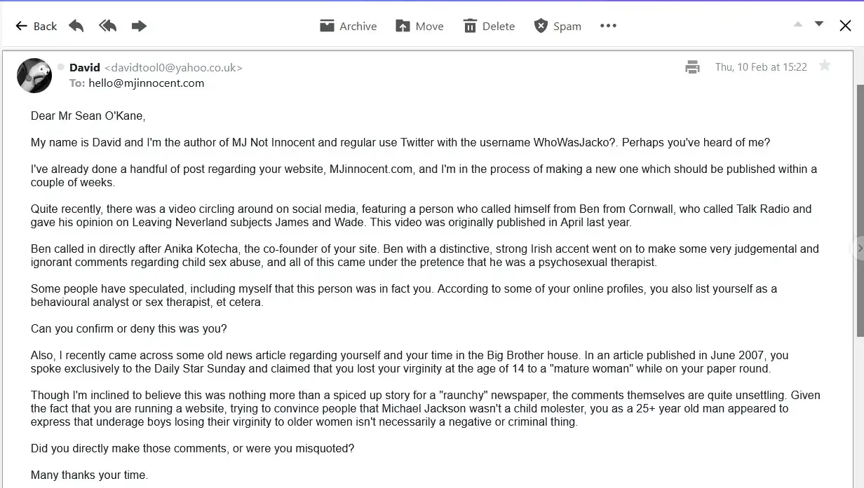 Let's be bluntly honest. Ben from Cornwall was not an impartial individual who, after conducting personal research, changed his belief from Michael Jackson's guilt to innocence. Instead, he appeared to be a thinly veiled Michael Jackson fan intending to mislead the host and audience.