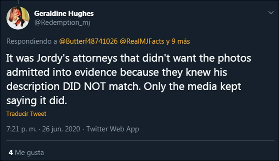 It was Jordy's attorneys that didn't want the photos admitted into evidence because they knew his description DID NOT match. Only the media kept saying it did.