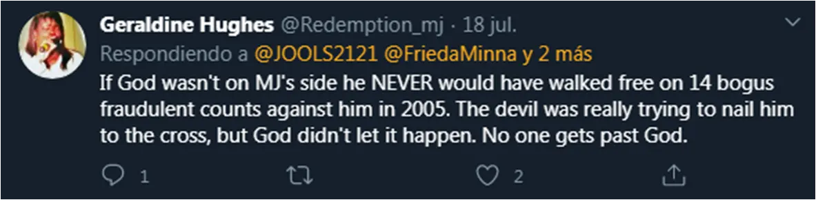 Despite these criticisms, Hughes has built a loyal following among Jackson supporters. She frequently appears on fan‑led podcasts and platforms, and has made religious and emotional declarations—claiming she was chosen by God to defend Jackson, that accusers will face divine punishment, and describing Jackson’s death as that of a “saint” on social media.