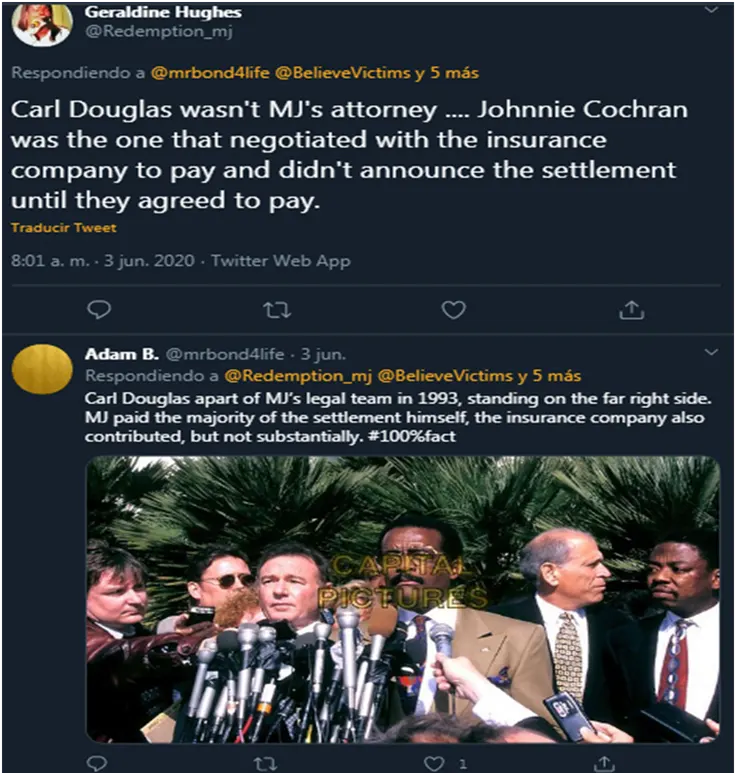 Carl Douglas apart of MJ's legal team in 1993, standing on the far right side. MJ paid the majority of the settlement himself, the insurance company also contributed, but not substantially. #100% fact.