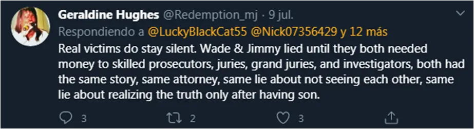 By that logic, any survivor of sexual abuse who writes a book or appears in a documentary must be dismissed outright. That’s absurd. In the United States especially, it’s common for survivors to share their stories publicly—through memoirs, interviews, or films—as a way to raise awareness and support their own healing. Wade Robson and James Safechuck doing so doesn’t invalidate their accounts. Nor does it make them unique. Many documentaries have been released both before and after Leaving Neverland, documenting abusive celebrity predators and giving a platform to survivors affected by them.