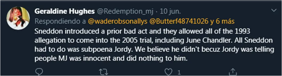 Sneddon introduced a prior bad act and they allowed all of the 1993 allegation to come into the 2005 trial, including June Chandler. All Sneddon had to do was subpoena Jordy. We believe he didn't becuz Jordy was telling people MJ was innocent and did nothing to him.