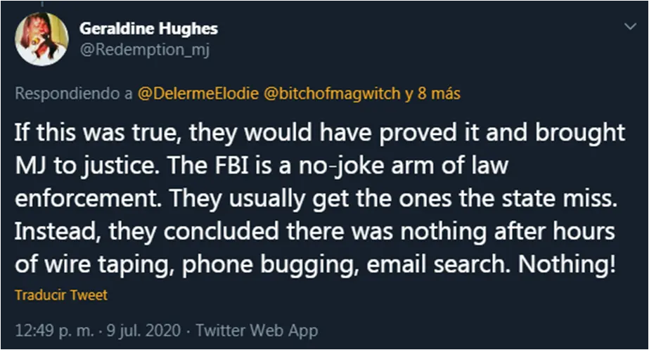 As for her claims that the FBI spied on Jackson—be it through phone tapping, email interception, or covert surveillance—that is nothing more than Geraldine’s own fabrication. If any such records genuinely existed, one must ask: where is the evidence? No files, transcripts, or reports have ever surfaced to substantiate her claims. Until they do, it remains a baseless narrative.