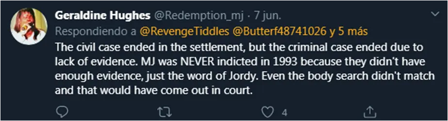 The civil case ended in the settlement, but the criminal case ended due to lack of evidence. MJ was NEVER indicted in 1993 because they didn't have enough evidence, just the word of Jordy. Even the body search didn't match and that would have come out in court.